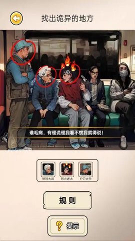 在阔怕的真相中,玩家的主要任务是通过观察画面,找出其中的异常之处。每个关卡都有一幅精心设计的画面,玩家需要仔细检查每个细节,寻找那些不合常理的元素。通过点击画面中的可疑之处,玩家可以逐步揭示出隐藏的线索,推动故事的发展。游戏的设计鼓励玩家多次尝试,错过的细节可以在后续的关卡中重新审视,增加了游戏的可玩性。