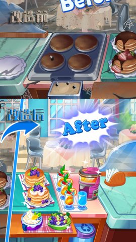 2、游戏中提供多种厨房用品供玩家升级和装饰,提升餐厅的整体氛围和顾客的满意度。