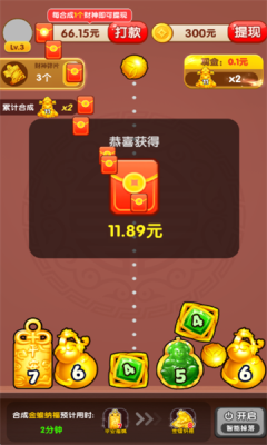 1、合成出财神爷后将获得额外的惊喜奖励,增加了游戏的趣味性和挑战性,让每一次合成都充满期待。