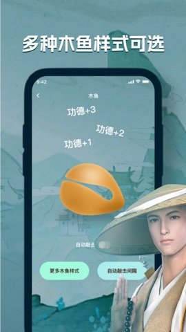 1、游戏提供多款不同样式的木鱼供玩家选择,每一种木鱼都有独特的音效,让你在敲击中享受多样的减压体验。