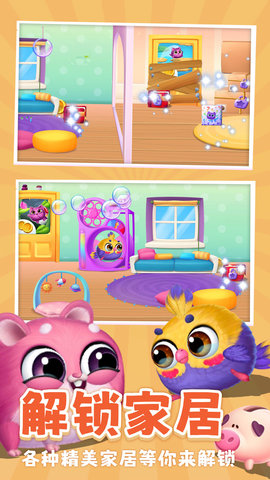 我的毛球小精灵是一款养成类的宠物模拟游戏,玩家将拥有一个充满可爱虚拟宠物生物的房子,并负责照顾它们,探索它们带来的精彩故事。玩家可以通过解锁养成和小游戏获得金币,进而积累更多的小星星。这些小星星可以用来解锁更多独特的房间或室内装饰道具,为宠物们打造一个舒适温馨的家园。