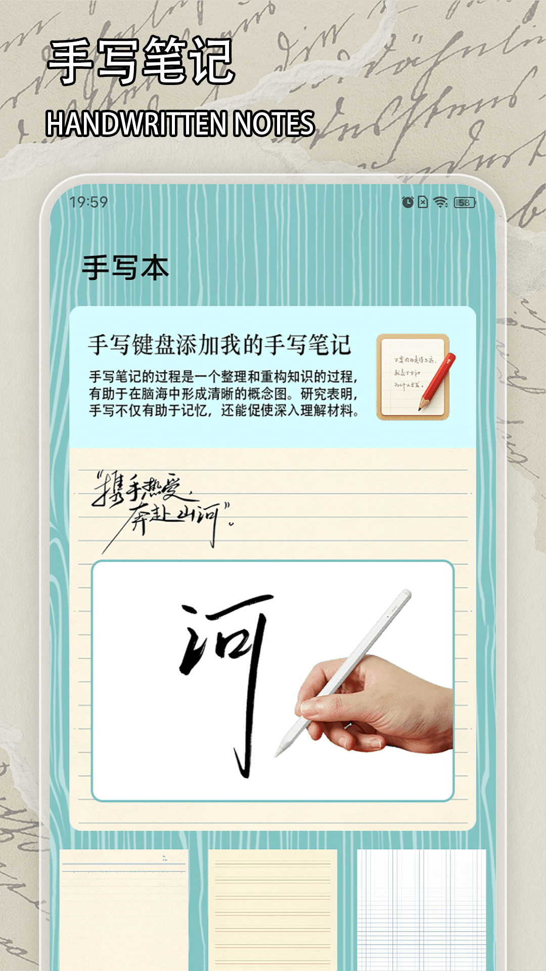 1、手写区域对笔触的压感与速度有细腻的反馈,线条的粗细变化能够模拟出真实钢笔或毛笔的书写效果。