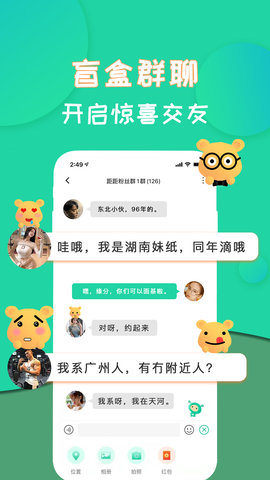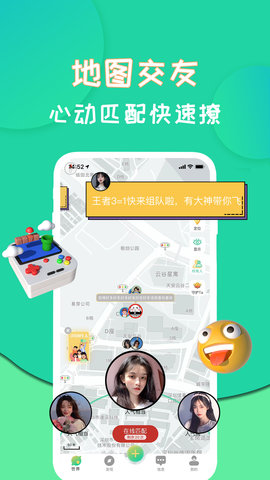 1、地图找人功能让你在虚拟地图上直观看到附近用户的头像和大致位置,轻轻滑动转盘就能快速锁定想认识的潮流达人。