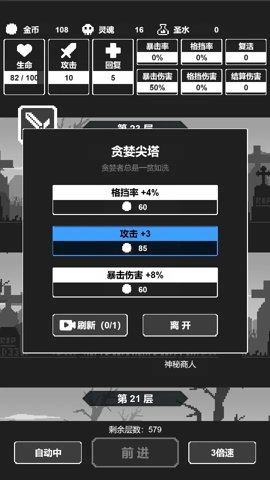 每一层的设计都充满了挑战,玩家需要在战斗中不断提升角色的等级。通过击败怪物获得经验值,角色的属性会随之增强,提升战斗能力。随着等级的提升,玩家还可以解锁更强大的技能,这为战斗增添了更多的策略元素。选择合适的技能组合,能够让你在面对强敌时游刃有余。