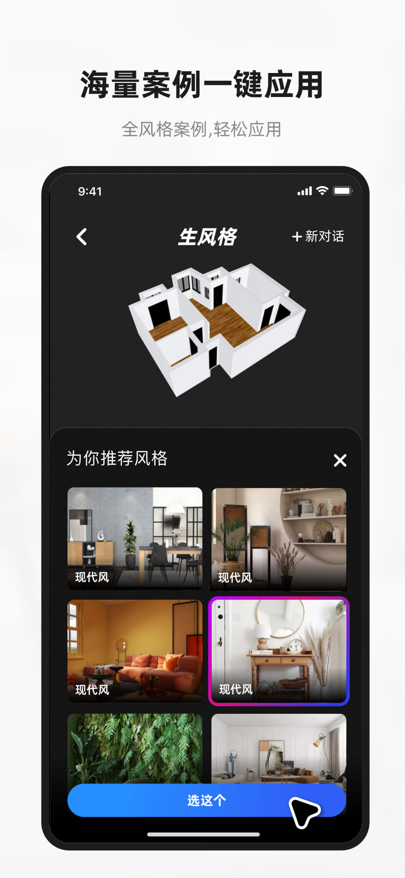 3. 如果想要定制自己的设计,选择AI智能助手,通过语音描述你想要的家装效果。