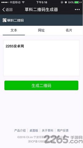 草料二维码生成器是一款功能强大的工具,专为需要生成二维码的用户设计。操作简单,而且能够快速生成多种类型的二维码,满足不同场景的需求。不论是个人名片、商品链接,还是其他信息,草料二维码生成器都能轻松搞定。通过它,将自己的创意和信息以二维码的形式展现出来,方便分享和传播。想要体验这一便捷的生成过程吗?快来2265安卓网下载吧!