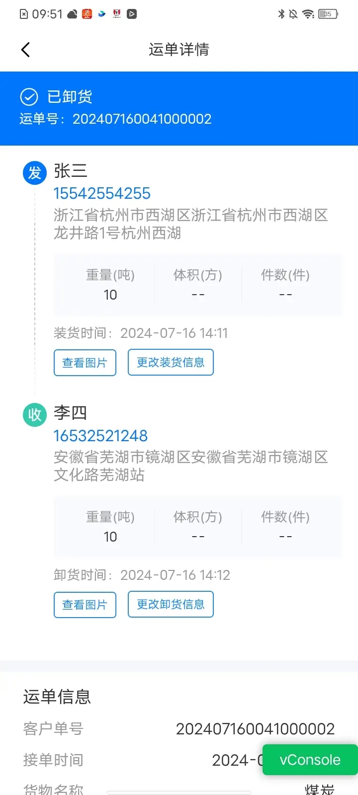 4. 接单后,进入运输管理界面,输入相关运输信息,系统将自动记录运输状态。