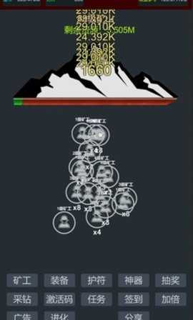 无限挖矿小游戏是一款充满策略与挑战的放置类游戏,玩家将化身为矿山的管理者,从零开始建立自己的采矿帝国。游戏的核心玩法围绕着招募矿工、升级设备以及探索神秘的矿脉展开。每一步都需要玩家仔细规划,合理分配资源,以便在离线状态下也能实现收益,逐步积累财富,最终成为矿山大亨。