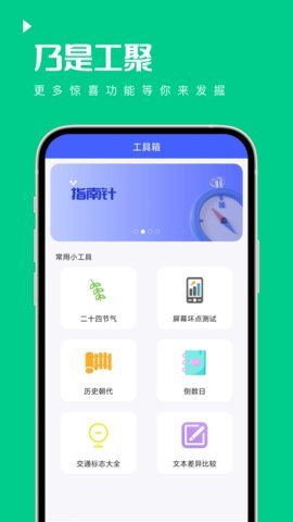 3、乃是工聚不仅是一个实用工具,更是一个多功能的工具箱,集合了多种绿色、安全、无广告的小工具,极大丰富了用户的选择。