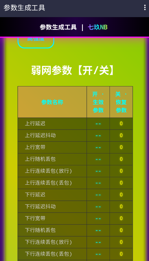 5、系统会生成一套参数方案,并显示具体开关状态。此时,检查弱网参数等关键选项是否符合预期,确认后即可点击应用,参数会生效于后台服务。