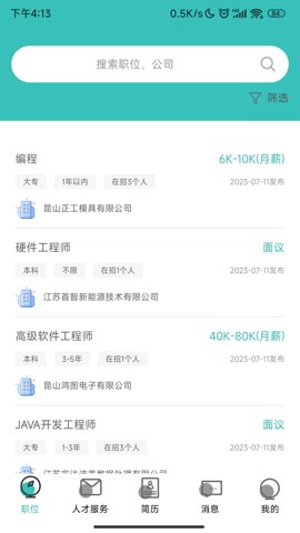 您可以在应用首页直接浏览最新发布的职位,也可以通过搜索功能快速找到您感兴趣的岗位。