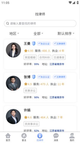 4、支持在线预约律师,根据自己的需求选择合适的律师进行面对面的咨询。