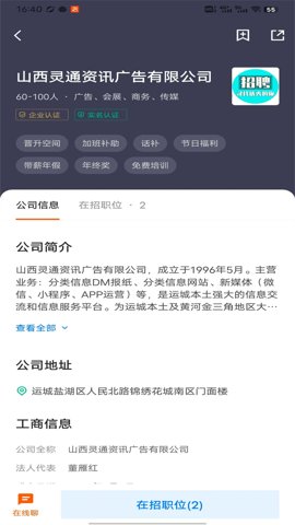 查看企业的详细信息,包括企业规模、文化以及员工评价,帮助求职者做出更明智的选择。