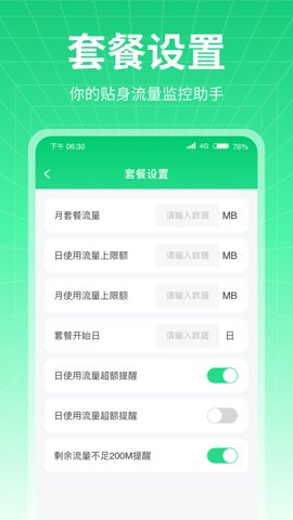 4、智能提醒功能,能够在流量即将用尽时及时提醒用户,避免因超流量而产生额外费用。