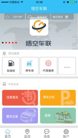 1、首先,下载并安装悟空车联APP,打开应用后您将看到主界面。