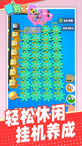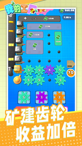 我的工厂是一款引人入胜的休闲经营游戏,玩家将体验到独特的工厂建设乐趣。玩家需要通过摆放齿轮来搭建生产线,利用齿轮的旋转来赚取收益。随着收益的增加,玩家可以购买新的齿轮,并通过合并同级别的齿轮来升级改造工厂。这种循序渐进的玩法不仅能够让玩家感受到经营的乐趣,还能激发玩家的策略思维,让玩家在不断扩大齿轮所在面积的过程中获得成就感。