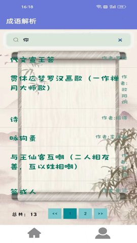 成语解析是一款专为学生设计的成语学习应用,致力于帮助用户深入理解成语的含义和用法。这个平台不仅提供了成语的详细解析,还涵盖了丰富的成语故事和历史典故,让学习变得生动有趣。通过该应用,轻松掌握成语的来源和词义,提升学习的效率和成果。无论是课堂学习还是日常应用,成语解析都能为你提供有力的支持。