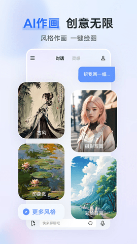 蓝心千询APP是维沃移动通信有限公司基于vivo蓝心大模型研发的公版App,蓝心千询是用户的全天候私人助手,覆盖AI对话和AI灵感两大核心应用场景。在AI对话模块下,支持“超能问答”以及“超能创图”两大功能,用户可以通过自然流畅的AI对话进行文本问答、开放问答亦或是基于文档的问答,以高效获取信息、知识。无论写诗、AI作画、创作歌词、撰写标题,vivo千询皆可胜任。
