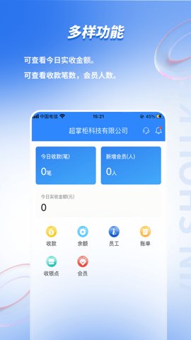 1、支持一键收款,商家可以快速完成交易,提高顾客的等待体验,减少排队时间。