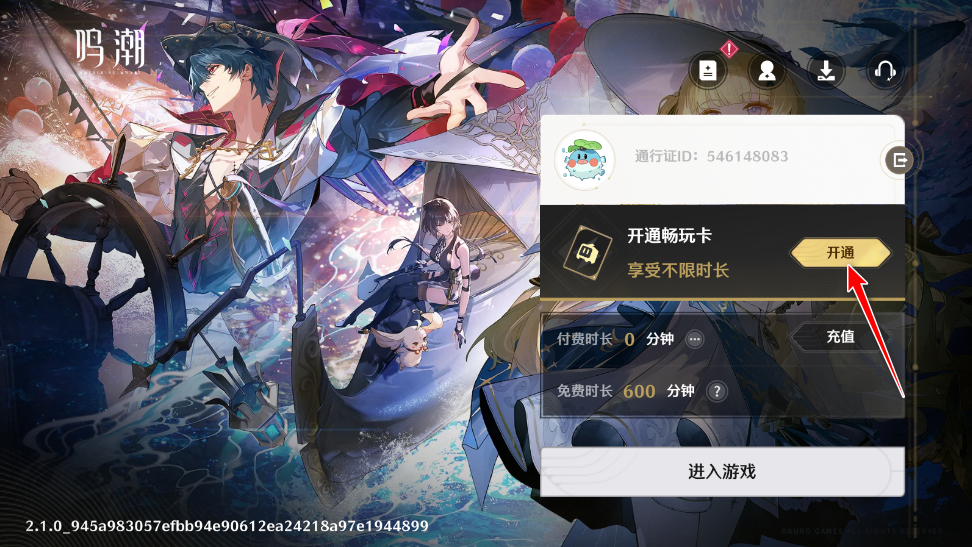 1、打开云鸣潮,在主界面点击畅玩卡旁边的开通。