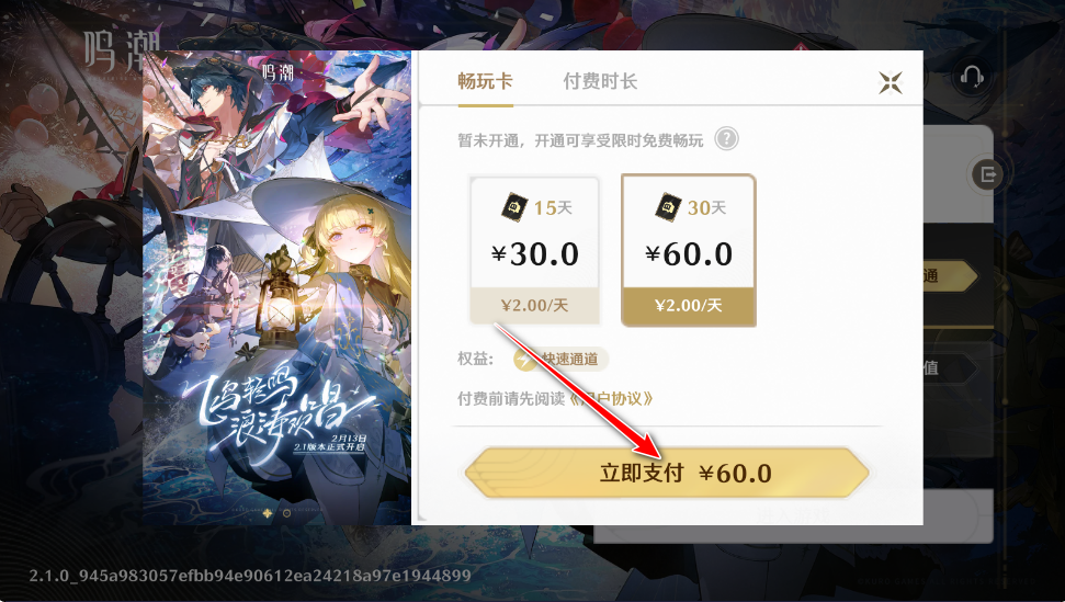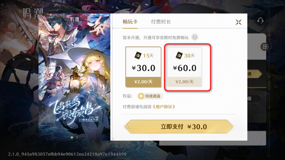 2、购买游戏中的月相观测卡(大月卡)可额外领取时长(需登录云鸣潮激活领取)。