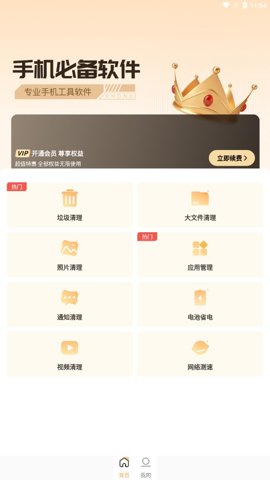1、垃圾清理:支持快速清理缓存、广告和无用文件,释放手机存储空间,提升运行速度。