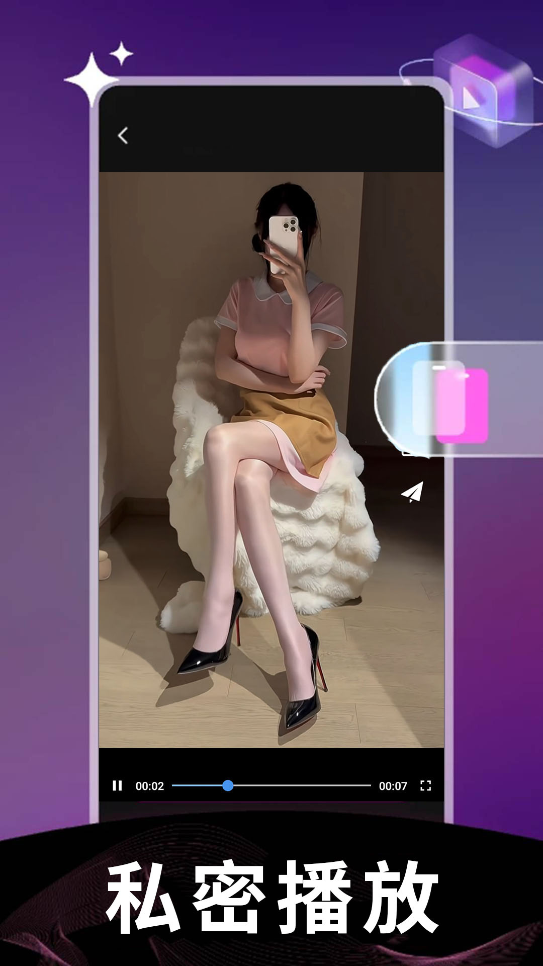 4、全屏播放时,轻触屏幕可调出进度条、音量及亮度调节等播放控制面板。
