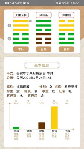 2、提供多种分类测试服务,包括测终身卦、测运势、测事业等,帮助用户全面了解自己的各个方面。