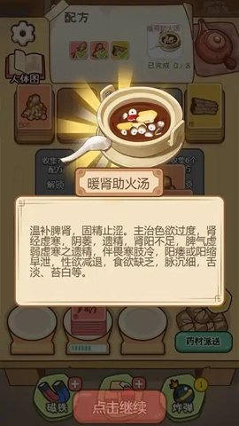 在游戏开始时,玩家将接受师傅的指导,了解基本的药理知识和针灸手法。通过简单的教程,玩家可以迅速上手,掌握基本的消除玩法。在每个关卡中,玩家需要通过消除相同的药材,来完成师傅布置的任务,收集足够的药材制作药汤,帮助病人恢复健康。