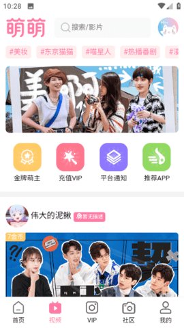 1、首先,下载并安装萌萌社区应用,打开后你会看到简洁明了的首页。