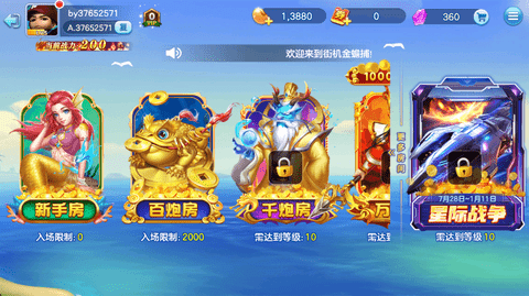 星际捕鱼是一款将科幻元素与传统捕鱼玩法巧妙结合的游戏,玩家将在广袤的宇宙渔场中展开精彩的捕捉之旅。游戏中提供了多种不同的房间选择,包括新手房、百炮房、千炮房和万炮房,满足不同水平玩家的需求。新手房是一个低倍率的练习场所,帮助新手熟悉游戏的基础操作与鱼类分值,而百炮房和千炮房则是中阶挑战区,要求玩家在捕捉高价值目标时合理分配炮弹资源。