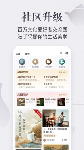 2.社区互动:东家App设有社区版块,用户可以在社区内分享自己的购物心得、文化交流,与其他用户互动,共同探讨东方文化与生活美学。
