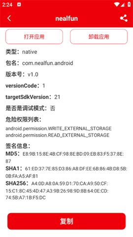 1、支持查看应用程序的签名SHA-1和MD5,帮助用户核实应用的真实性,确保下载的应用程序是安全可靠的。
