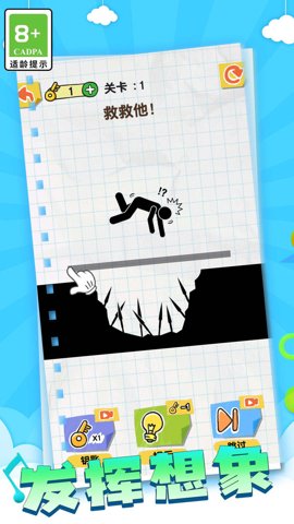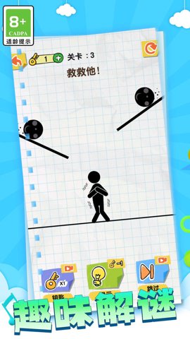 2、玩家可以自由发挥创意,通过不同的画线方式来解救火柴人,鼓励独立思考和创新。