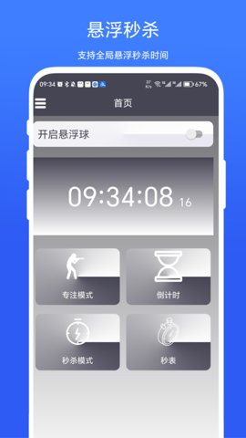 1、支持一键添加桌面悬浮时钟,随时查看时间,特别适合抢购等紧急场合。