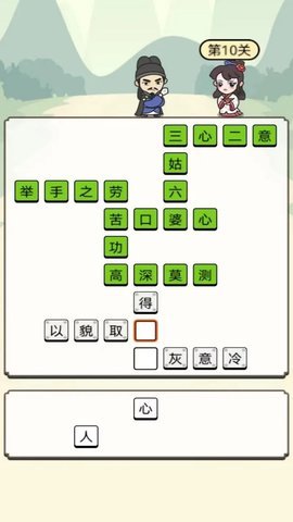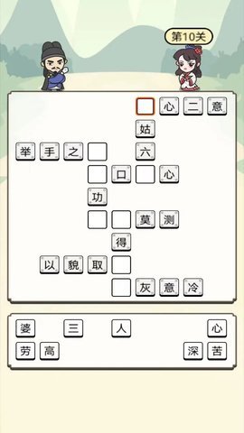 这款游戏的背景设定围绕着成语接龙的经典玩法,玩家需要根据已有成语的最后一个字,接出下一个合适的成语。游戏采用了简约清新的画面风格,让玩家在轻松愉悦的氛围中进行思考。随着关卡的推进,题目的难度逐渐增加,玩家不仅需要运用自己的知识储备,还要灵活运用思维来找到合适的接龙词汇。每个关卡都充满挑战,越往后越需要玩家充分发挥想象力和创造力,才能顺利通关。