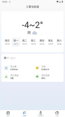 1、支持一键查询功能,快速获取当前天气和未来几天的天气预报,方便用户提前做好出行准备。