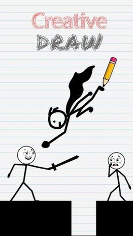 1、玩家通过简单的点击和拖动操作,画出线条来引导火柴人移动,避开障碍物。