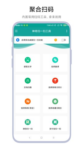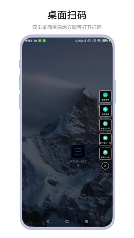 软件支持后天运行模式,用户只需双击手机桌面任意空白处即可快速启动扫一扫功能,使用体验流畅自然。