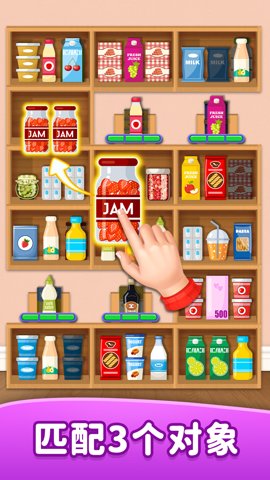 1、货柜消除达人的玩法非常简单,玩家需要将三个相同的物品装进一个收纳盒里。