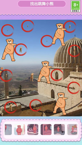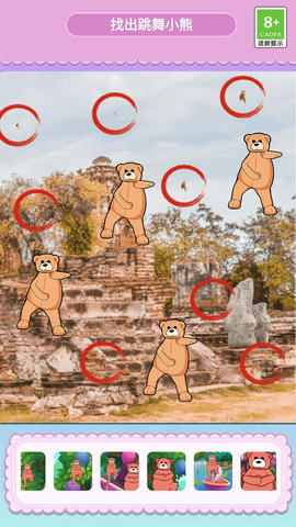 小熊爱派对是一款备受欢迎的休闲益智小游戏,其主要玩法是模拟找茬。玩家需要找到跳舞的小熊,而这些可爱的小熊们隐藏在复杂多变的场景之中。玩家需要仔细观察每个场景,找出所有小熊的位置,从而完成通关。这种找茬的玩法不仅考验玩家的观察力和专注力,还能带来愉悦的游戏体验。玩家在寻找小熊的过程中,还能感受到挑战和成就感,为游戏增添了乐趣和吸引力。