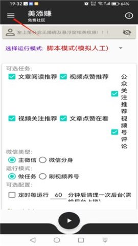 3、根据自己的需求选择任务类型,例如自动关注公众号或自动刷视频。