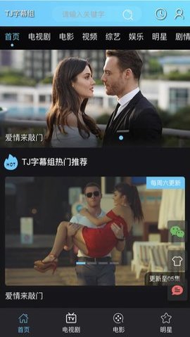 1、打开TJ字幕组平台,用户会看到首页展示的热门影视资源,快速浏览可选内容。