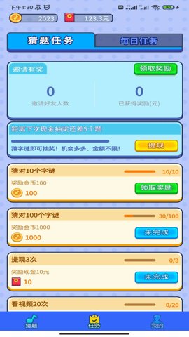 游戏中还有任务系统,玩家可以在完成特定的任务后获得额外的奖励。这些任务可能包括在一定时间内完成多少道题目,或者是连续答对几道题,完成任务后可以获得现金奖励,增加了游戏的趣味性和挑战性。通过不断完成任务,玩家的游戏体验也会更加丰富。