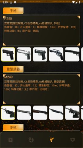 2、提供多种枪械的性能数据,玩家可以通过这些数据了解不同武器的优缺点,选择最适合自己的武器。