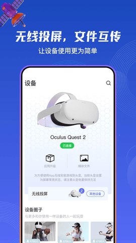 1、绑定VR设备的功能让轻松分享头显中的精彩视频和截图,与其他玩家进行互动,展示自己的游戏成果。