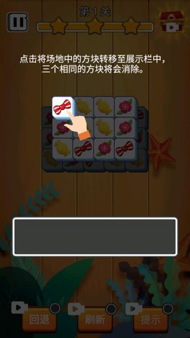 首先,玩家进入游戏后会看到一个充满方块的界面,目标是通过找出三个相同图案的方块进行消除。每次成功消除后,方块会下落并填补空缺,玩家需要时刻关注方块的堆积情况,避免方槽被填满。随着关卡的推进,方块的种类和排列组合会变得更加复杂,玩家需要灵活运用策略来应对。