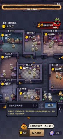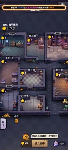 在小鸡大逃亡中,玩家需要选择一个安全可靠的房间藏身。每局开始时,所有玩家都会进入庄园内不同的房间,并可以选择投入金币以增加胜率。在每个回合开始时随机生成杀手出现位置,并依次进入各个场所搜索。