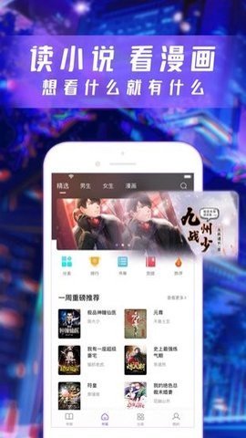 1、下载并安装漫酷阅读应用,打开软件后你会看到简洁的首页界面。
