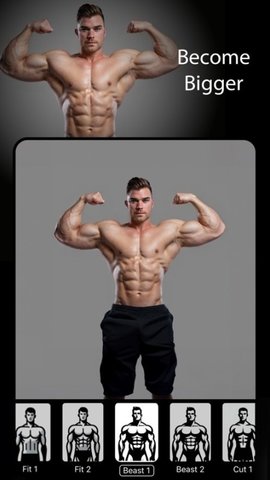应用提供多种预设肌肉模型(如八块腹肌、手臂线条等),点击模板即可预览效果。部分版本支持手动调整肌肉参数(如血管细节、体毛状态)。